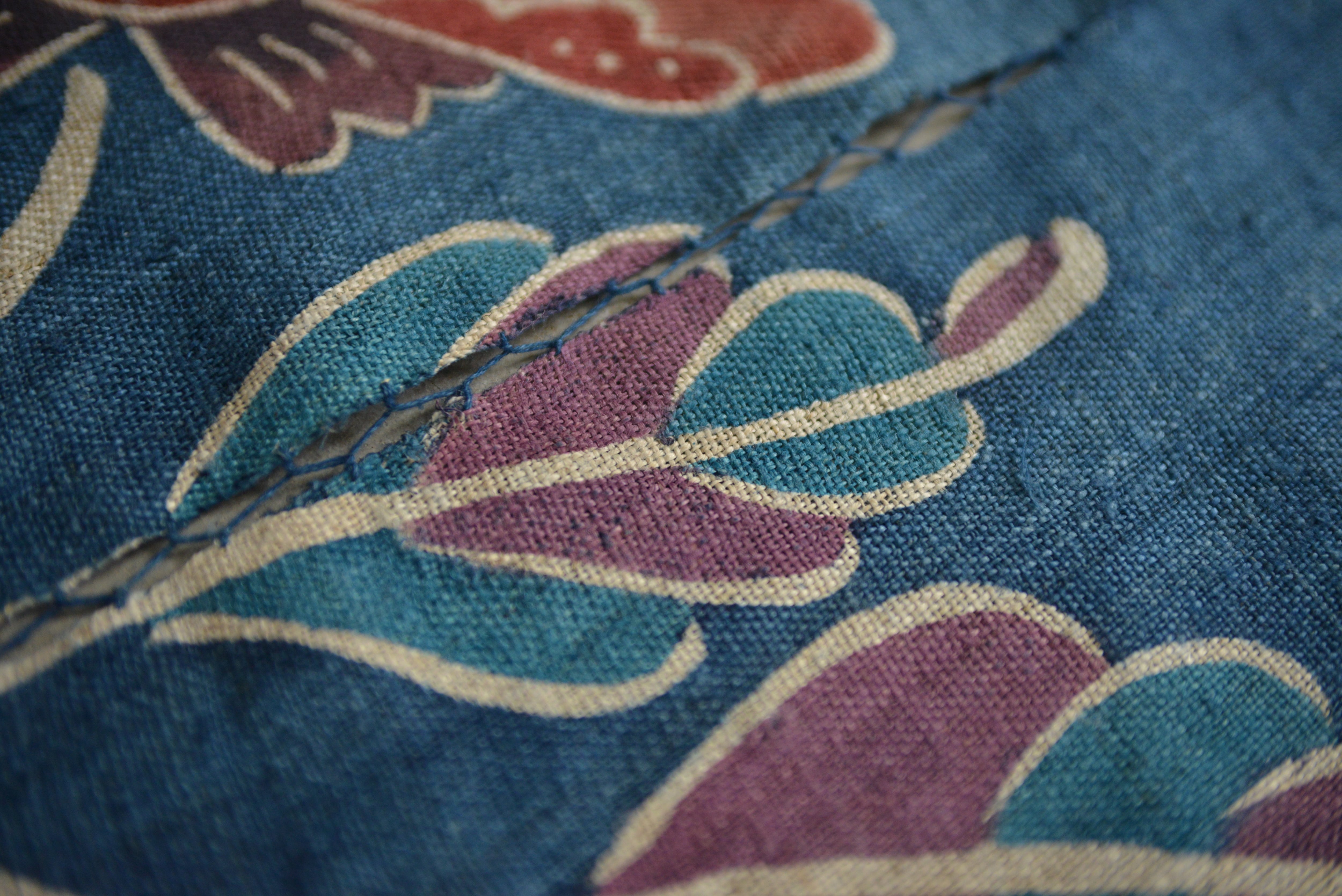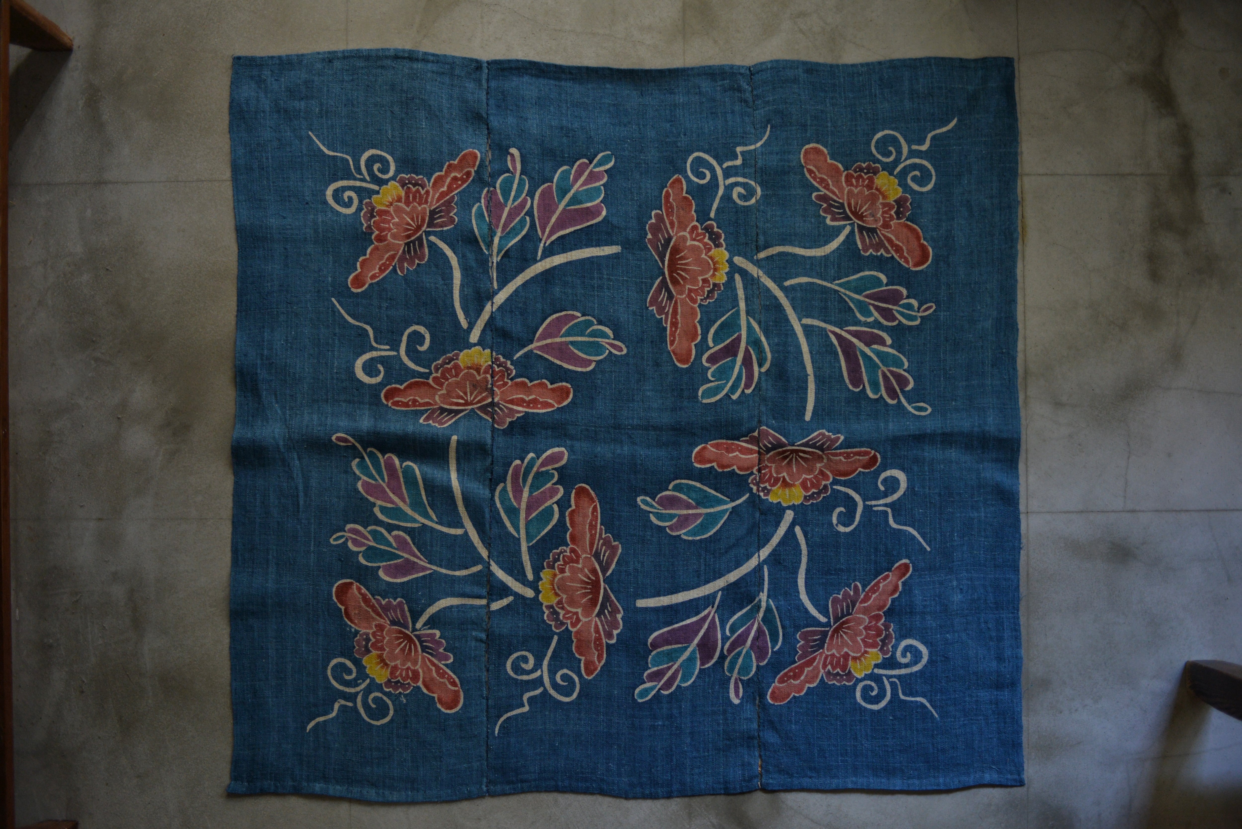 古典の紅型文様をもとに、琉球藍で染めた掛軸。
