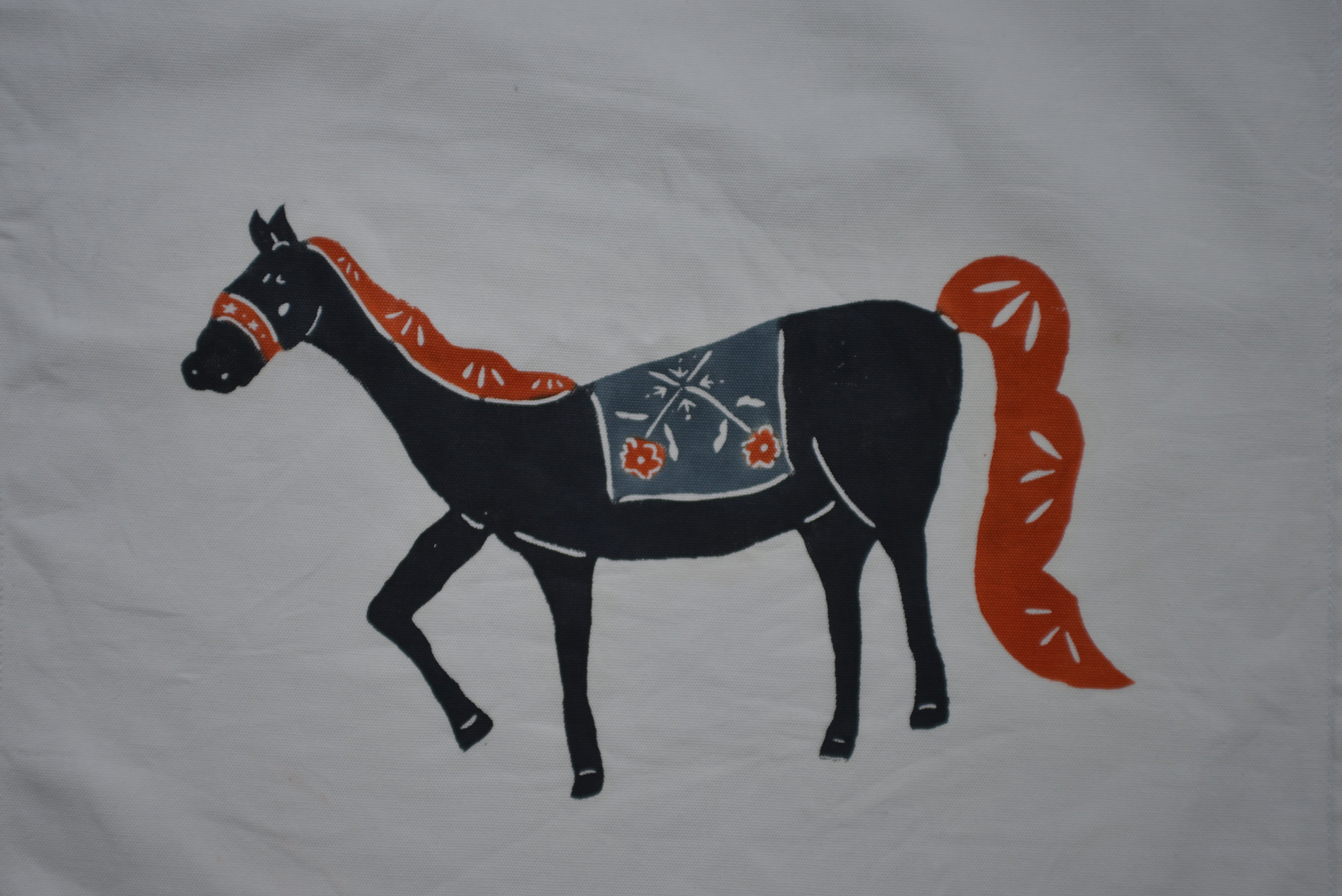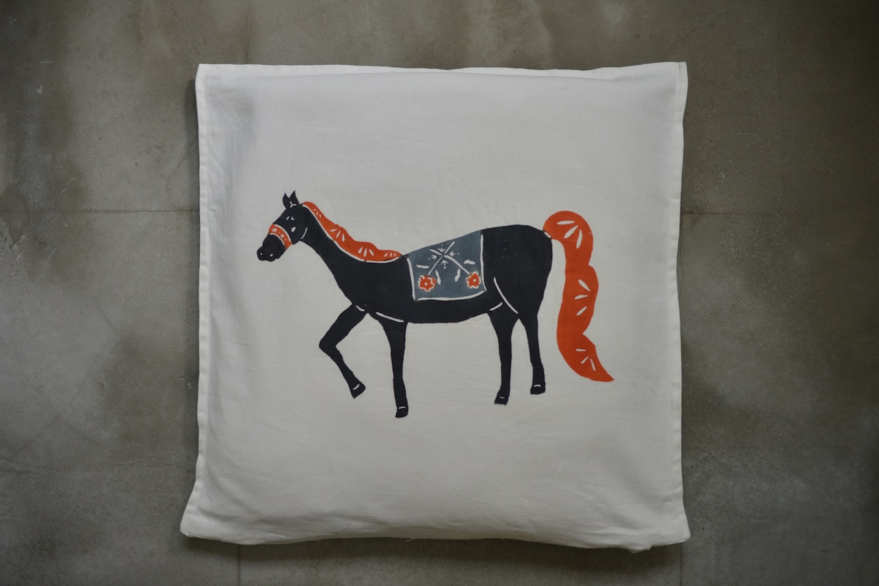 オリジナルの馬型が味わい深いクッションカバーです。