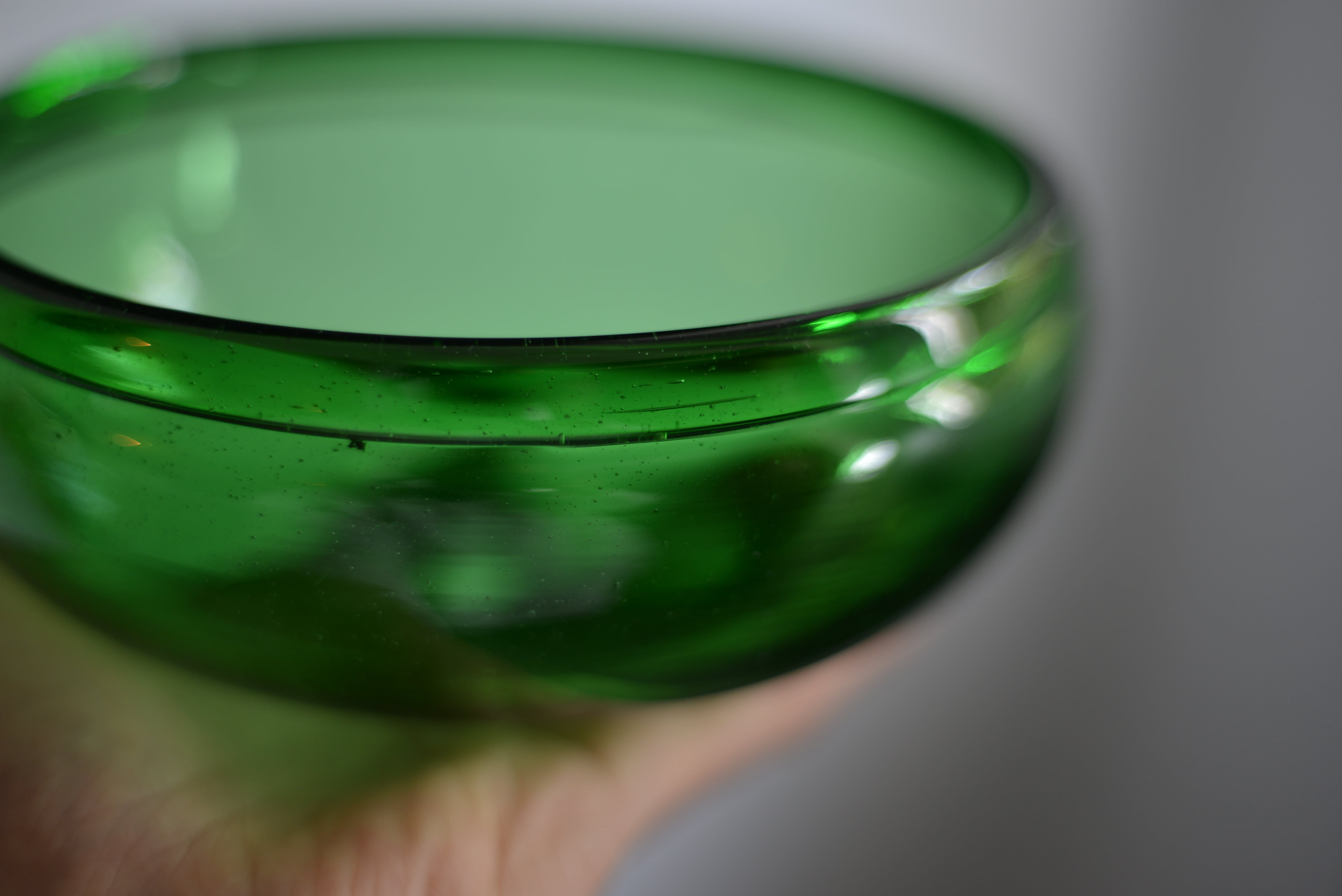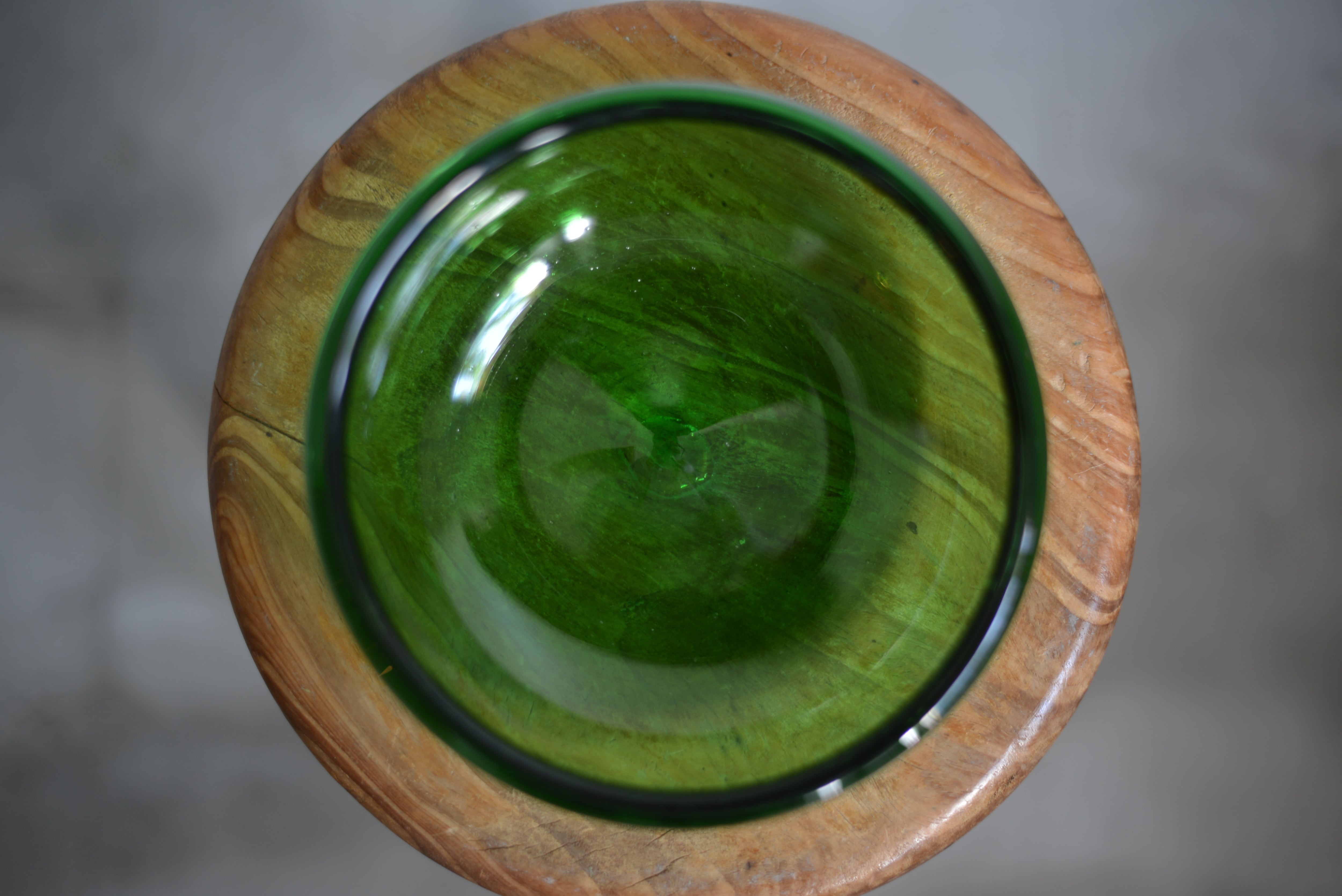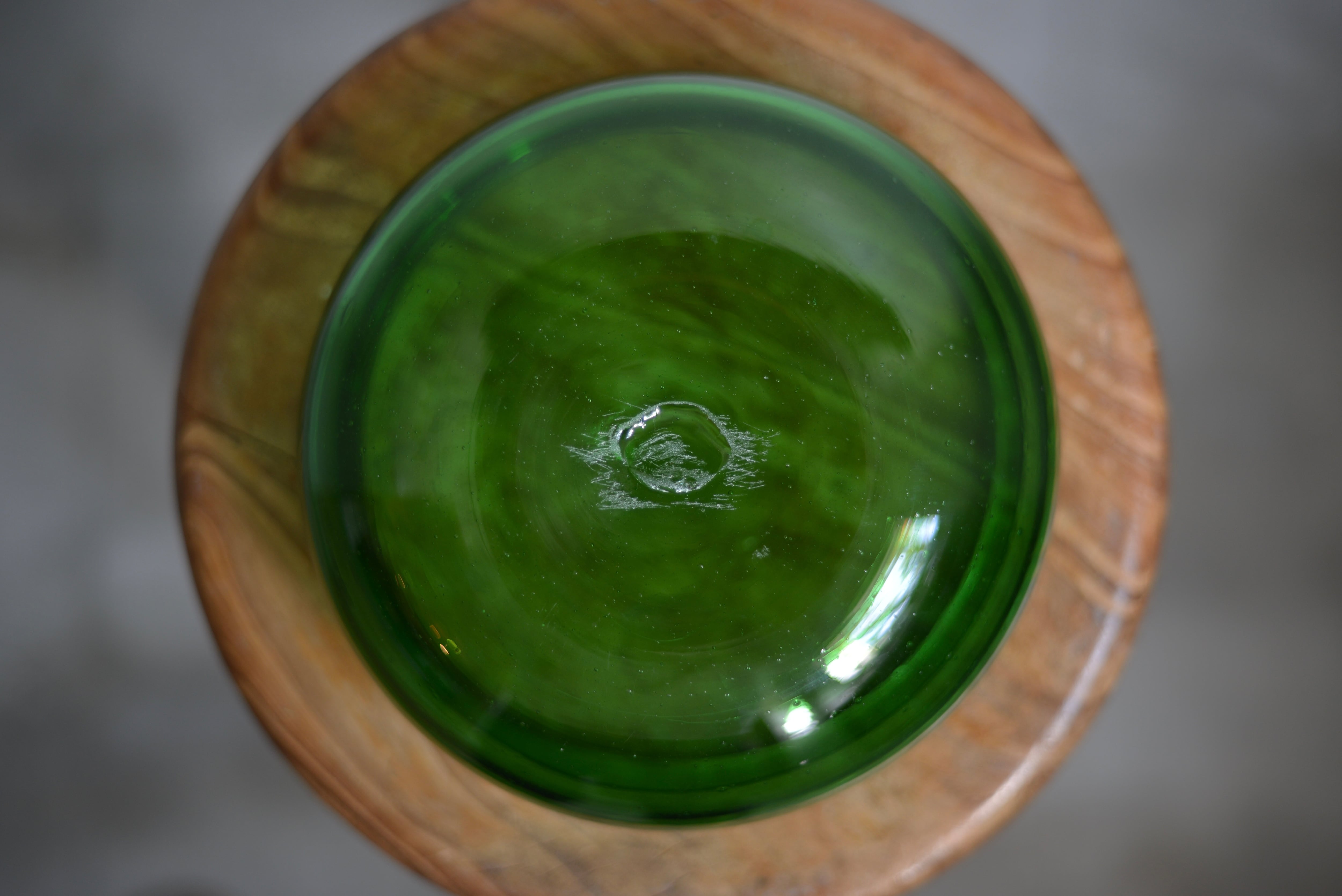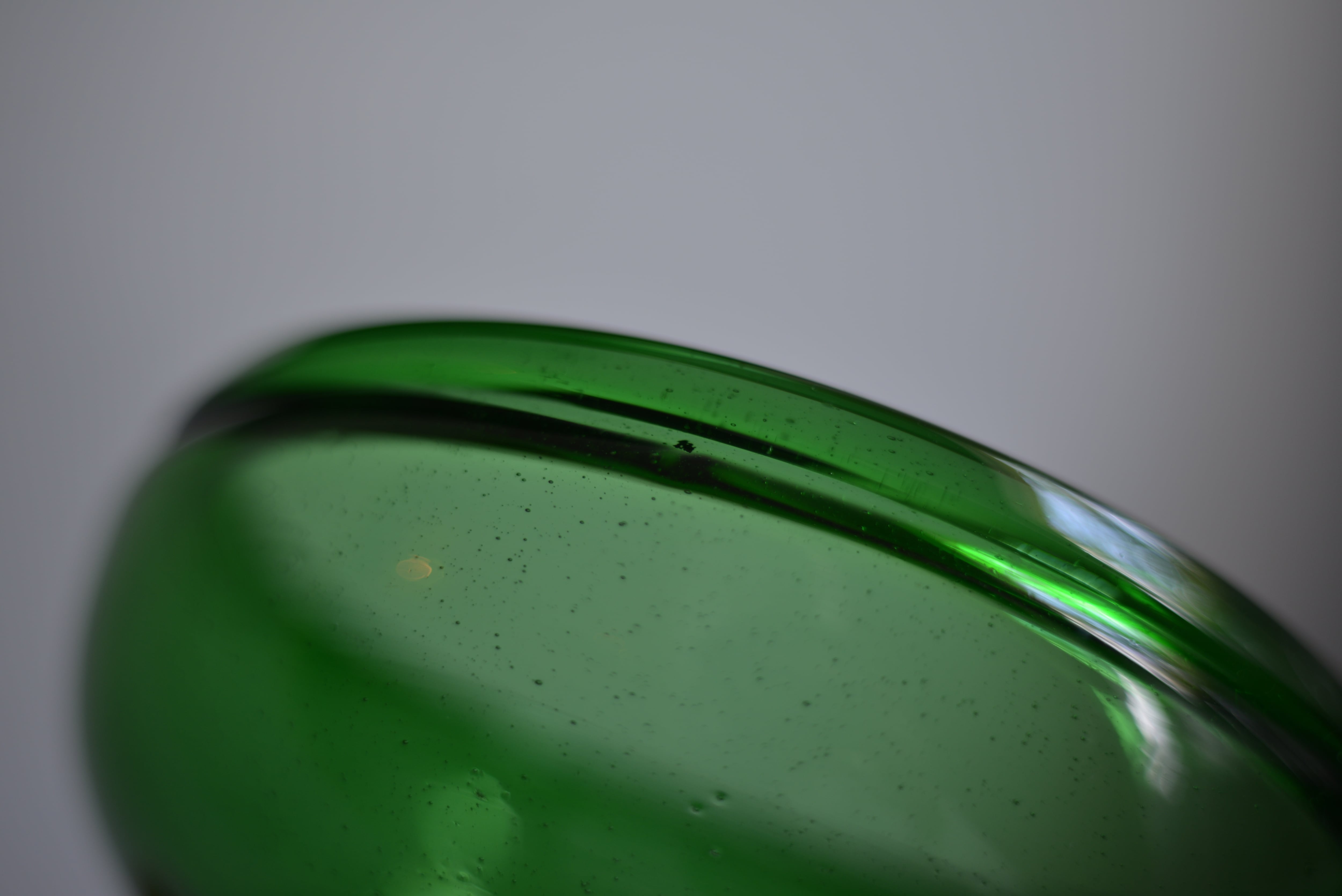 7UPなど緑瓶から再生した、推定1960年代頃の吹きガラスです。