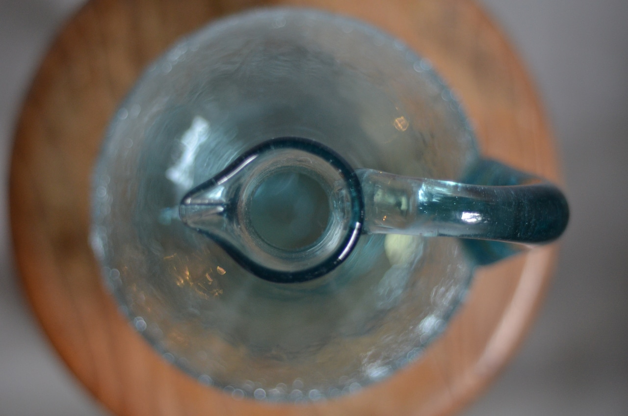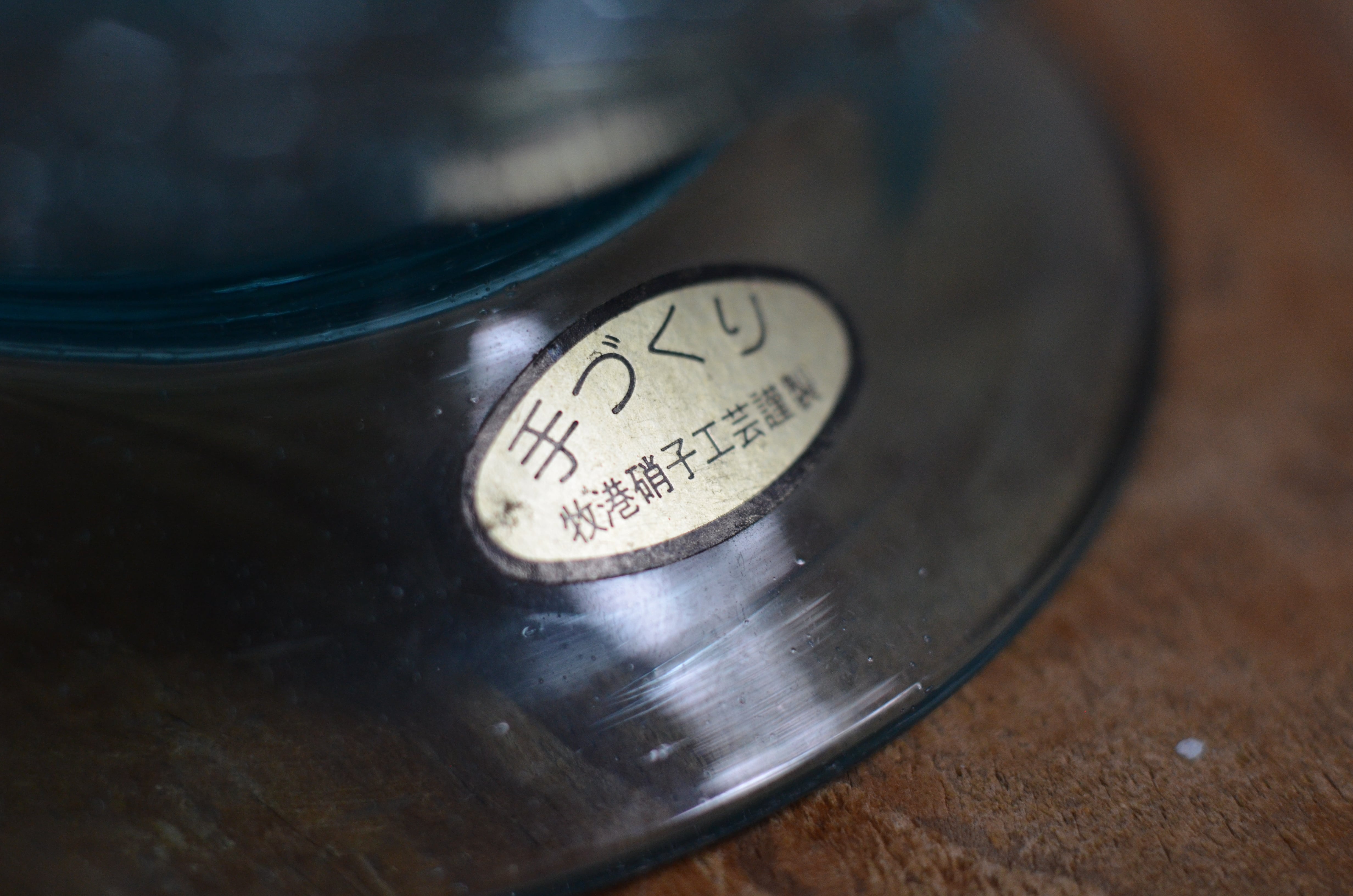 ラムネ瓶から再生した、推定1960年代頃の吹きガラスです。