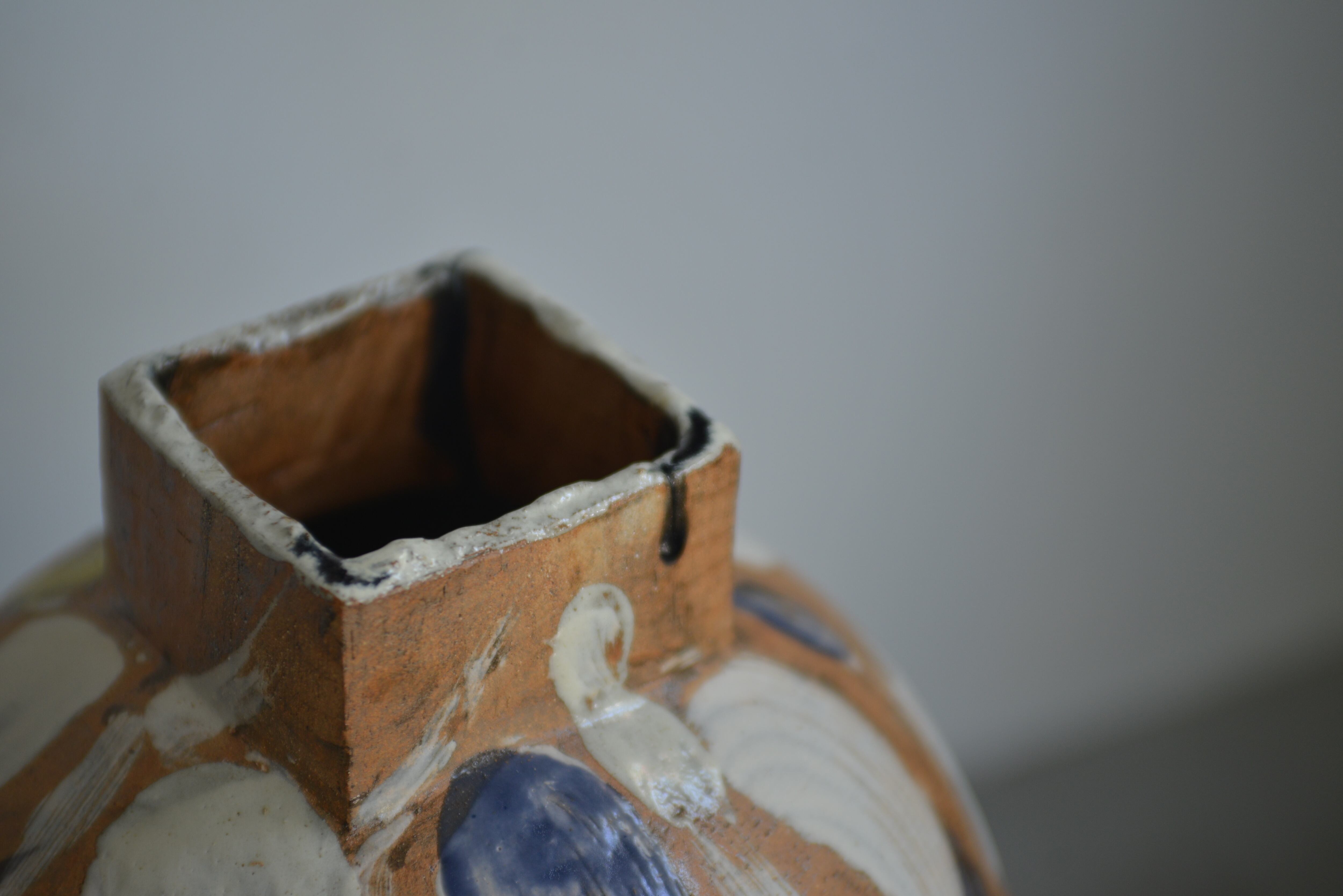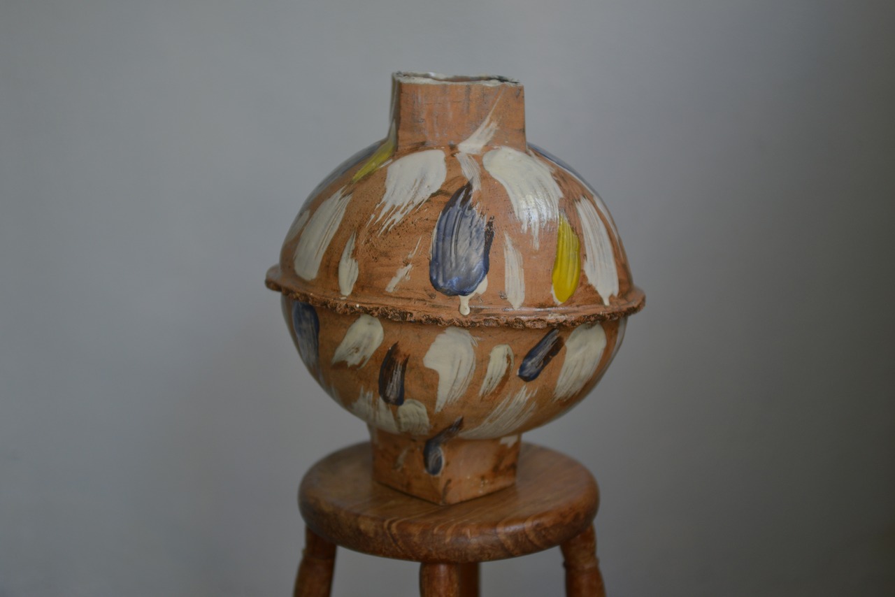 読谷村北窯における8年の修行を経て、八重瀬町は赤眞志原集落に独立された「アカマシバル製陶所」秋吉美歩さんによる一点物の大型花器。