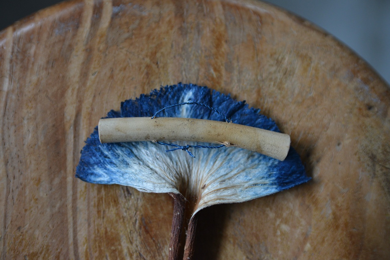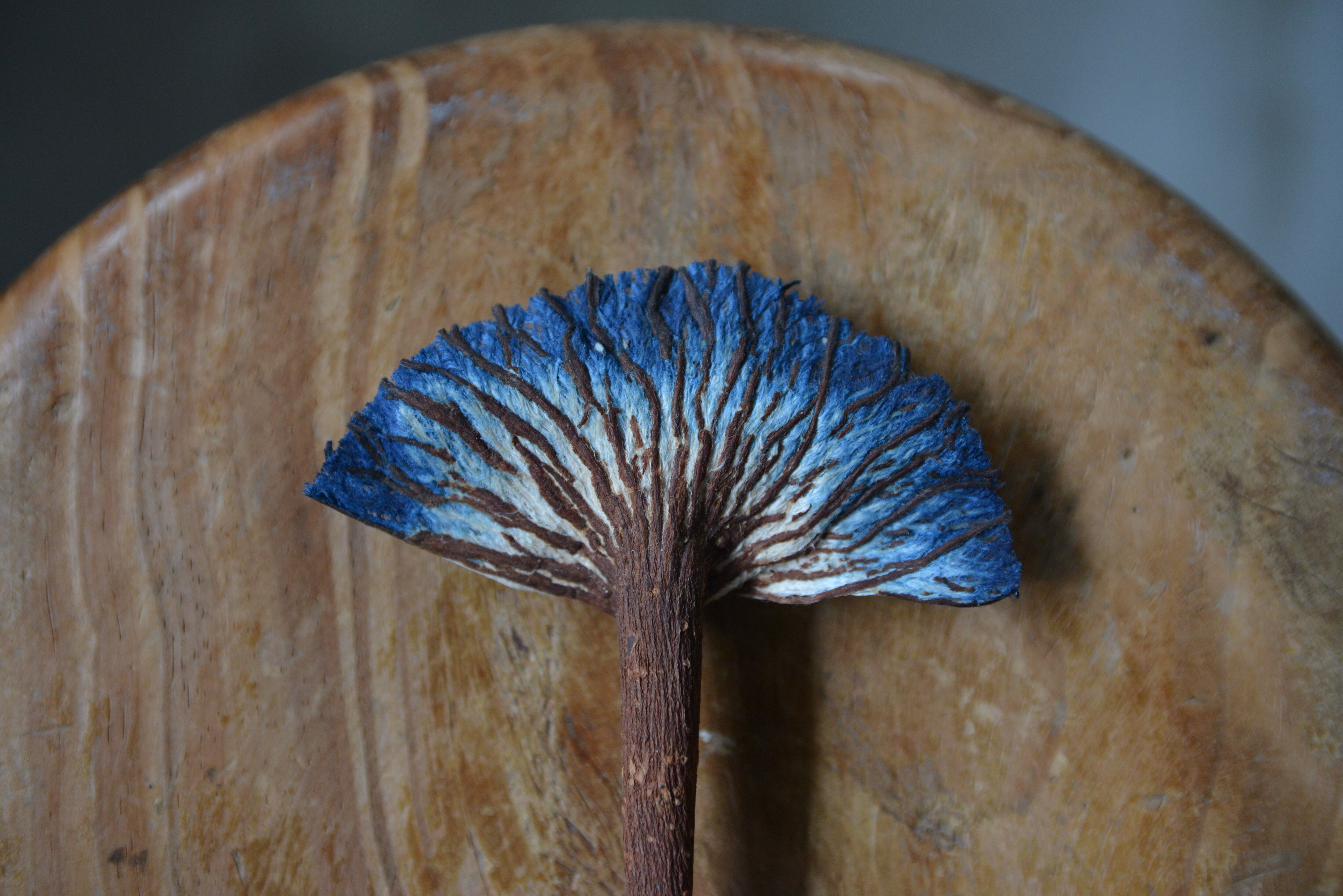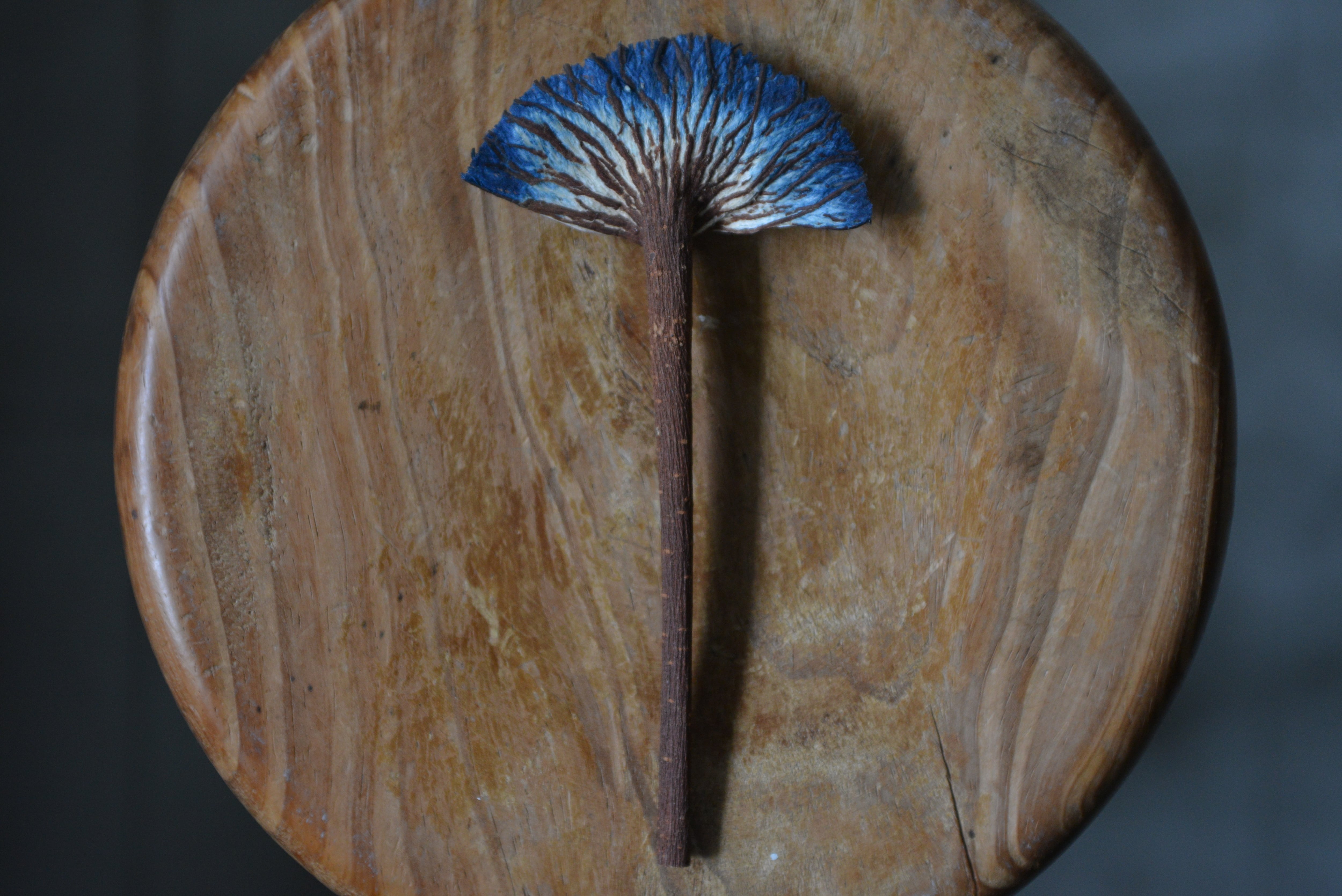 古くから琉球紙の原料とされるなど、神聖な樹木として伝わるカジノキの力強いテクスチャーと、琉球藍の美しいグラデーション。