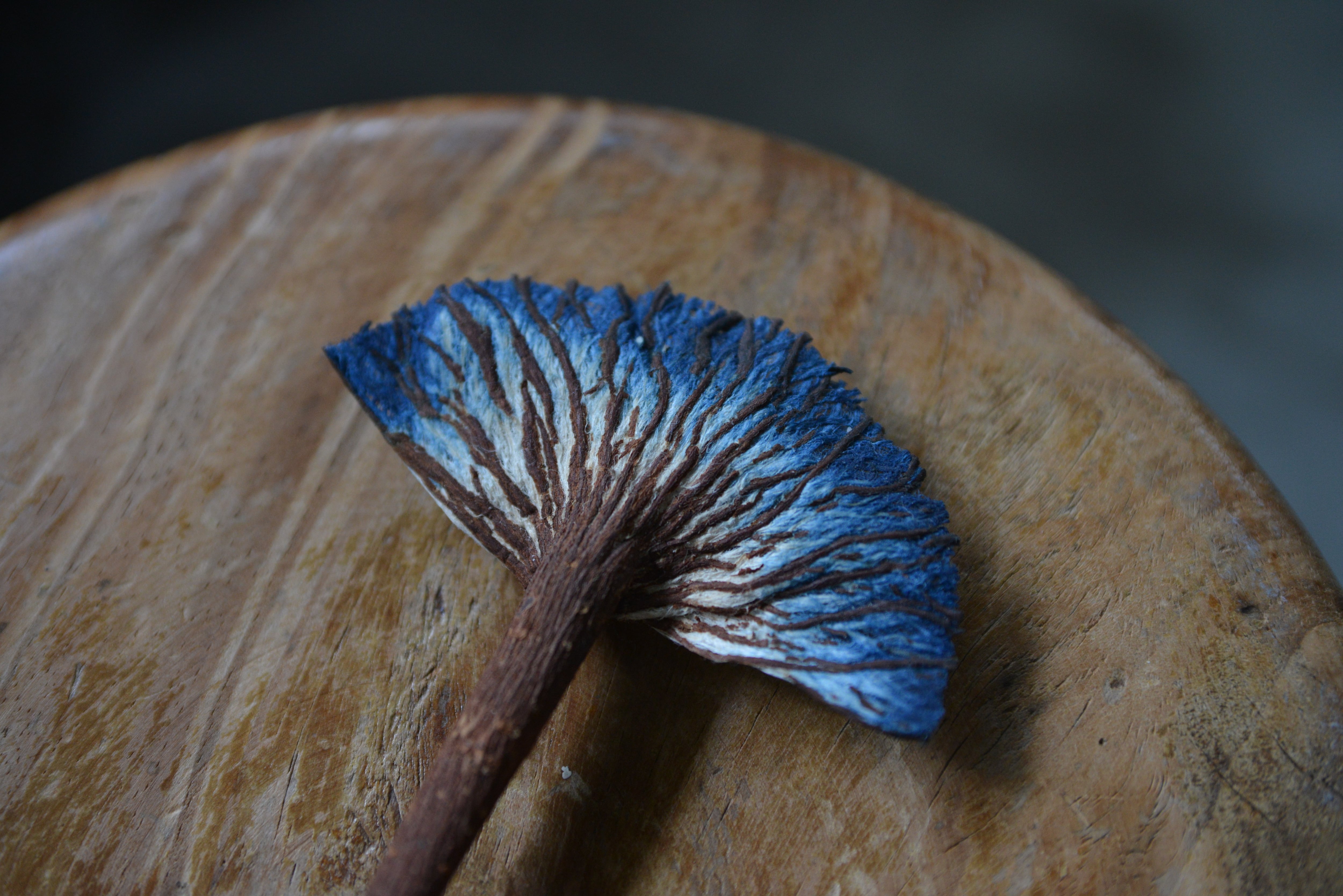 琉球藍の無農薬栽培から製藍・製品化までを一貫して手がける、今帰仁村の「亞人」早瀬 泉さんによる手仕事。