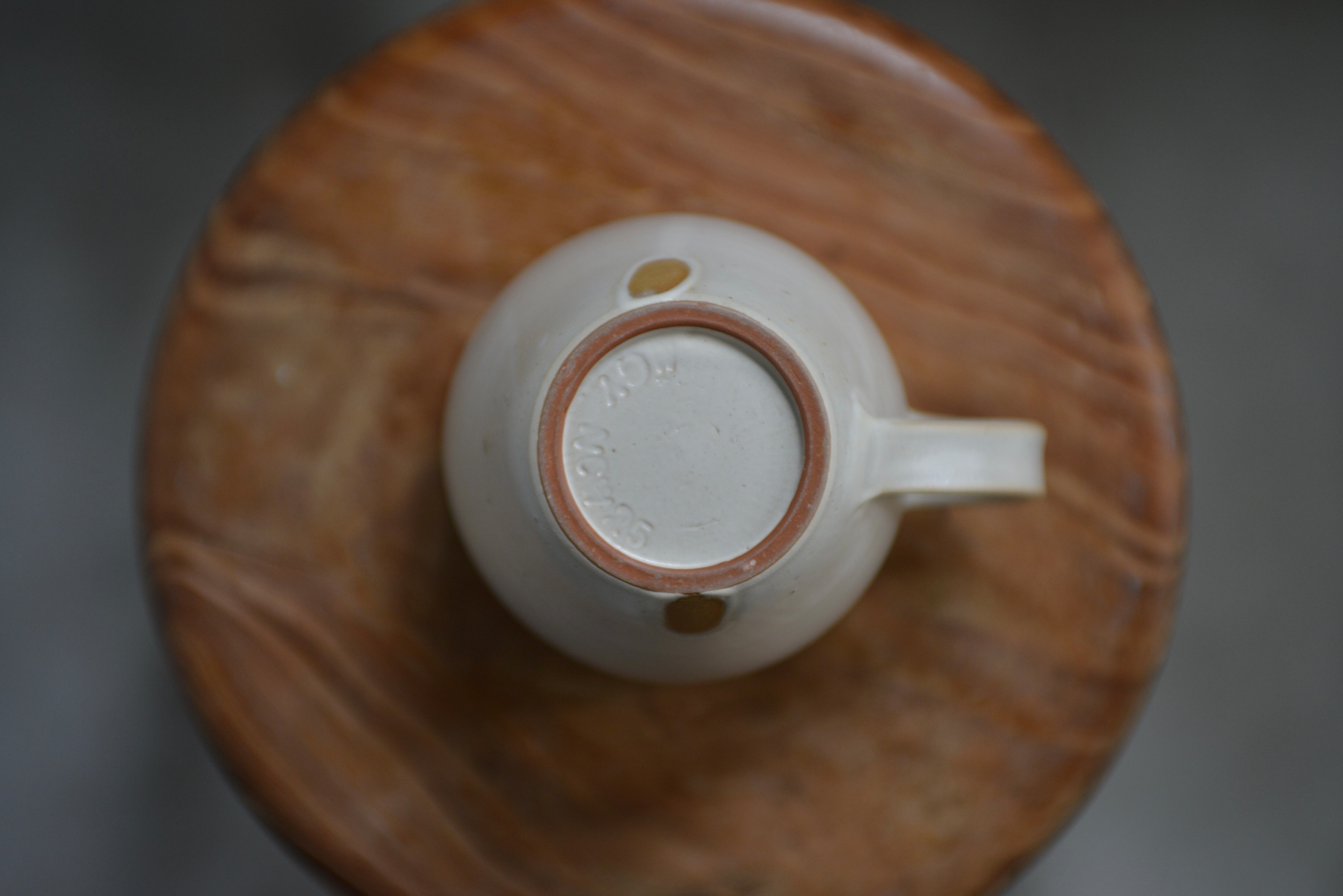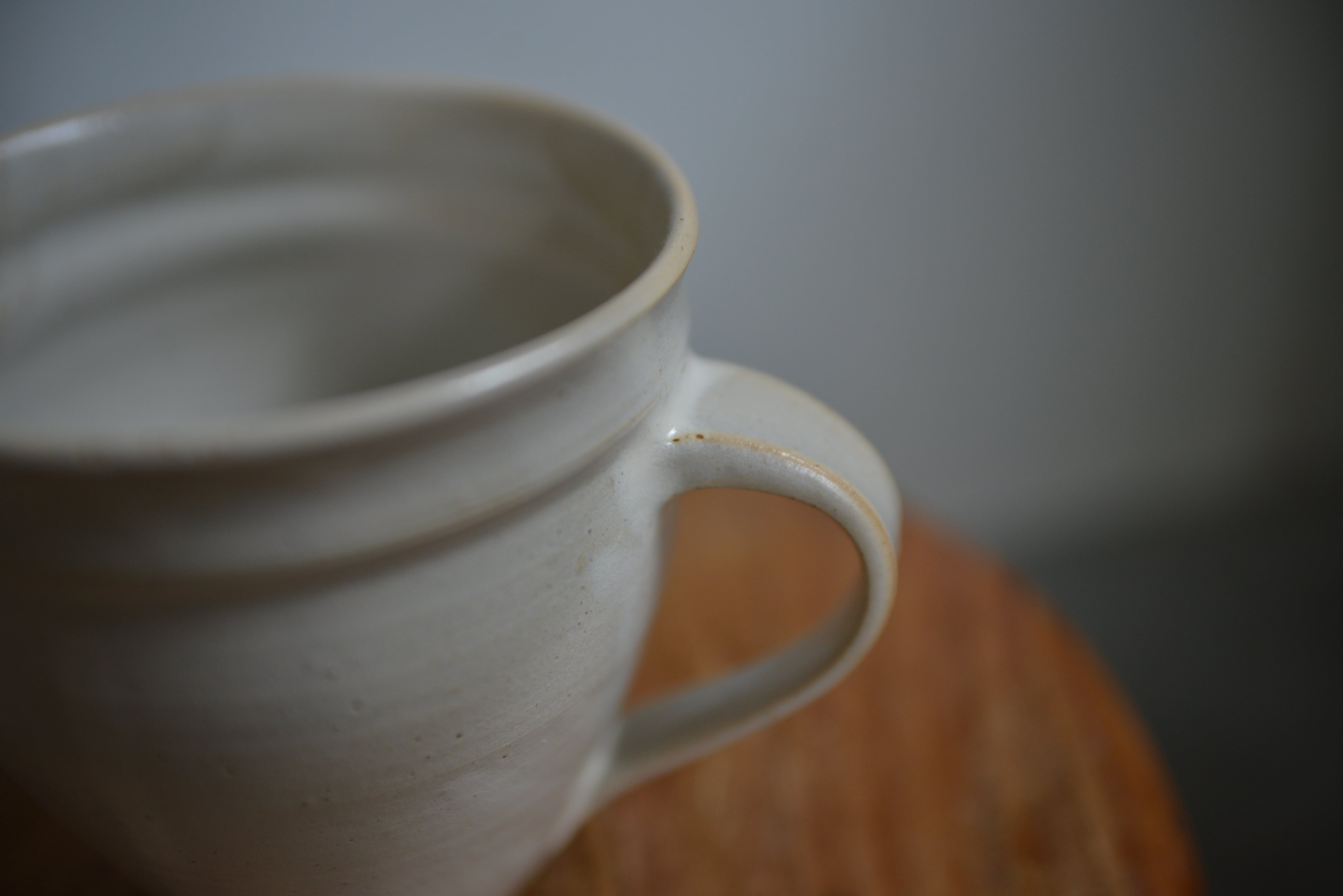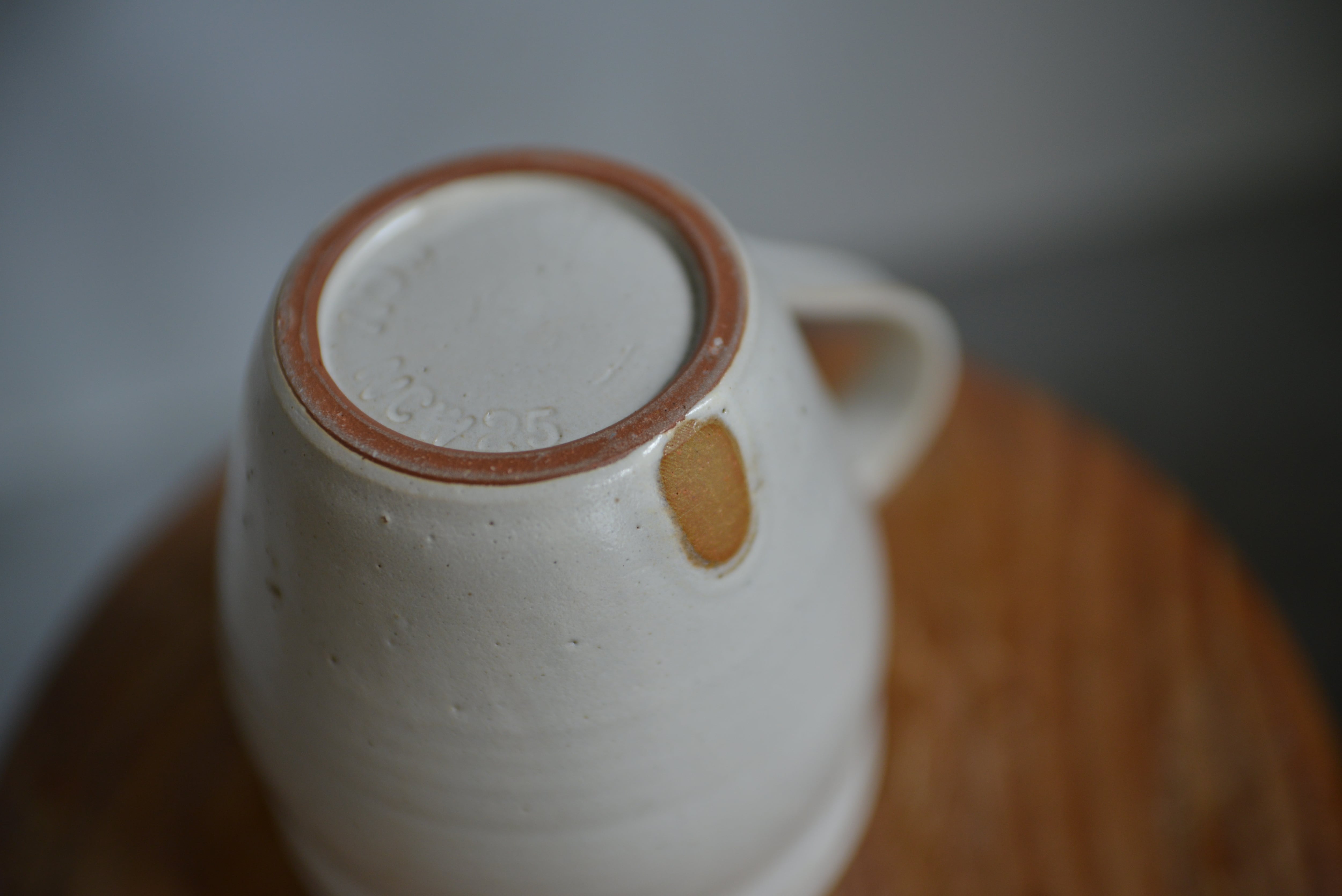 こちらはチタンマット釉由来の白ですが、よく見るとグレージュ系の奥行きや不均一なムラ感が魅力。アンティーク好きな方にも心地よい風合いです。