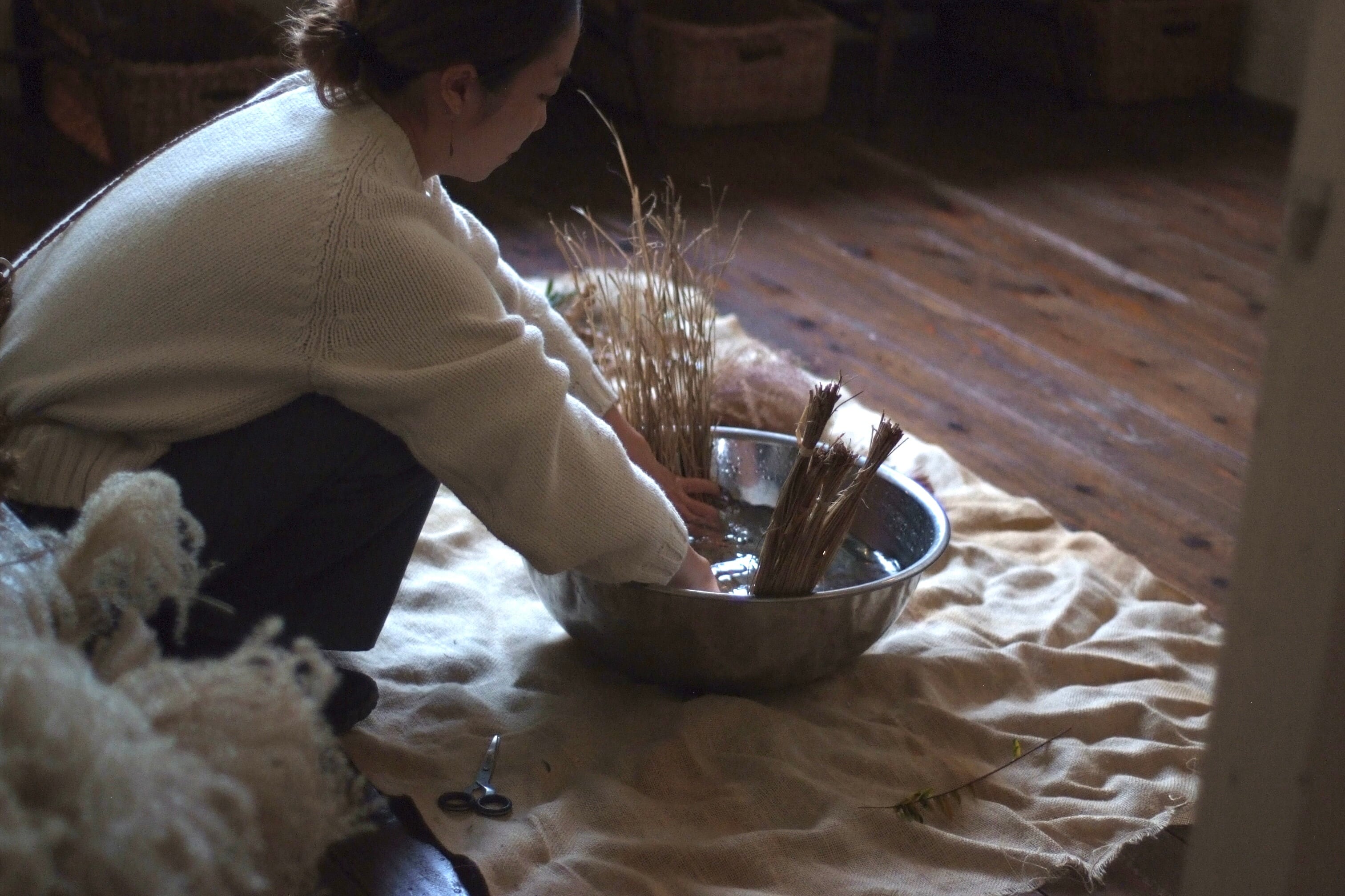 月桃と島の草木でつくる、しめ飾りワークショップ。